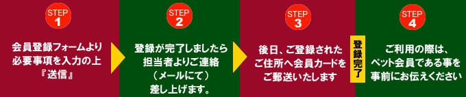 ご登録していただいた会員の皆さんには、ご利用時下記通常ペット料金から